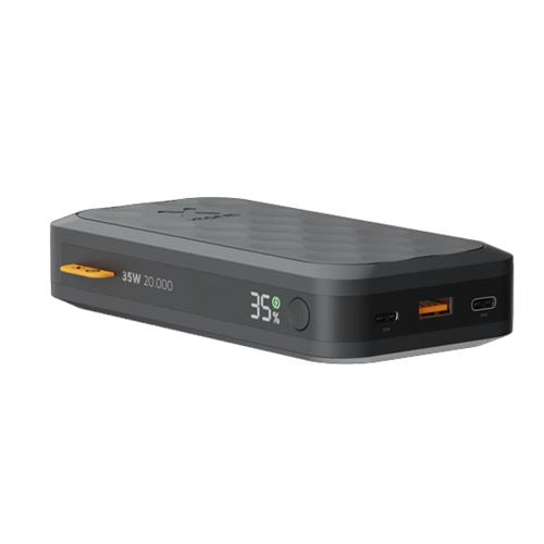 Este Power Bank de 20.000mAh possui 2 portas USB-C e uma porta USB-A. A saída USB-C PD de 35 W é perfeita para carregar rapidamente dispositivos móveis. A caixa é maioritariamente fabricada a partir de plásticos reciclados, em prol de um futuro sustentável.