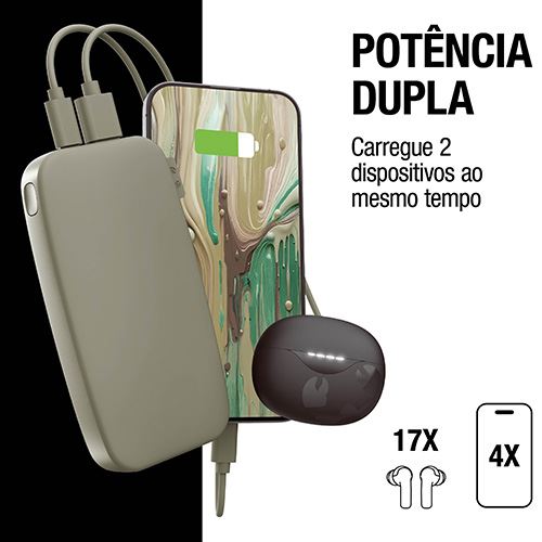 Além do próprio Powerbank, também podes carregar dispositivos como o teu telefone, altifalante ou auscultadores através da porta USB-C. Em conjunto com a porta USB no Powerbank, ou mesmo 2 portas USB no Powerbank de 18000 mAh, o que significa que podes carregar 2 ou 3 dispositivos ao mesmo tempo.