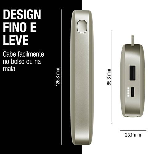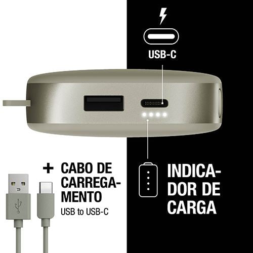 Todos os Powerbanks possuem um indicador de energia, para que possas verificar o nível da bateria em qualquer altura. Prime o botão e verás imediatamente a quantidade de bateria que ainda te resta.