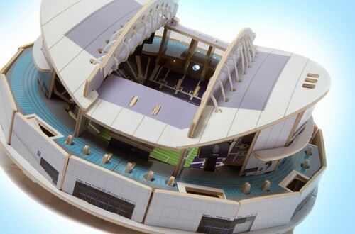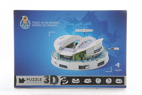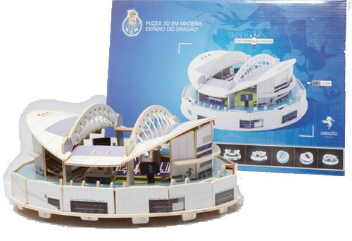 Puzzle 3D em Madeira: Estádio do Dragão com Luz Incluída - Kit Constrói