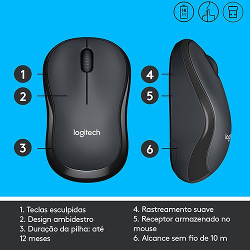 - Aproveite o Som do Silêncio: Com a mesma sensação e mais de 90% de redução de ruído (1) do som do clique, aproveite uma experiência ótima para você e para todos em redor com o mouse silencioso M220