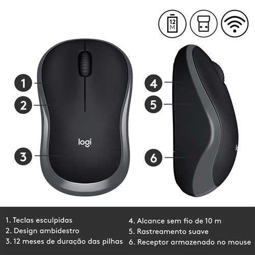 - Rato Compacto: Com um formato confortável e arredondado, o rato sem fios Logitech ambidestro é ótimo para a mão direita ou esquerda e é muito melhor do que um touchpad