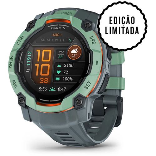 Relógio Desportivo Garmin Instinct 3 50mm AMOLED - Verde Neotropic/Crepúsculo (Edição Limitada)