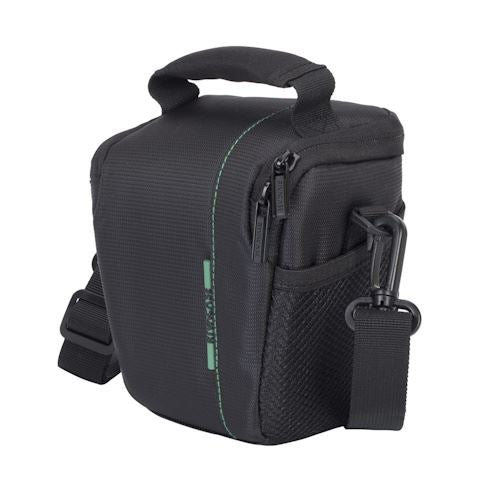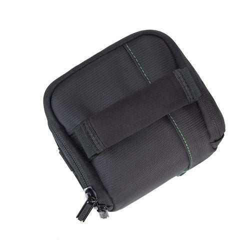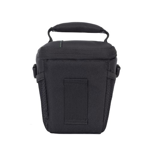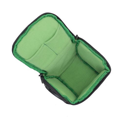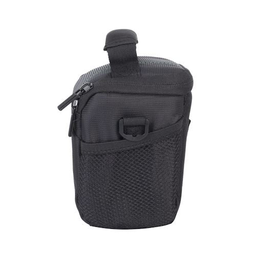 Forro interno em veludo macio | Parte superior dobrável com fecho duplo | 2 bolsos laterais externos para acessórios | 2 bolsos internos para cartões de memória e acessórios | Alça de ombro ajustável | Alça de transporte | Presilha para cinto | 2 puxadores de fecho para acesso rápido