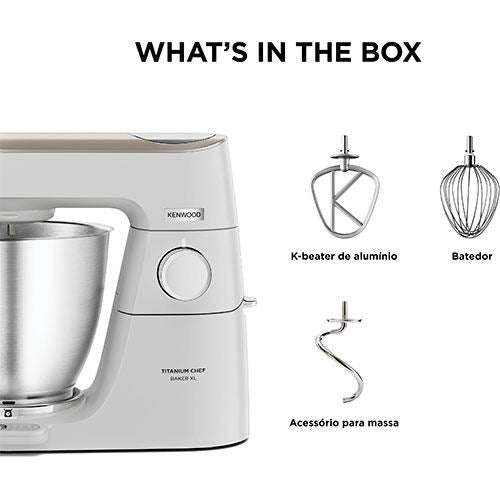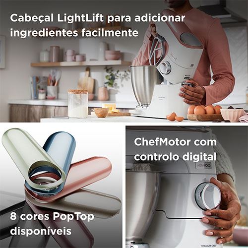 Outras Informações APP Kenwood World: Inspiração diária com receitas guiadas passo a passo para todos os níveis de conhecimento | Balança EasyWeigh | Customização de Cobertura | Cabeça LightLift™ Head | Potência controlada digitalmente