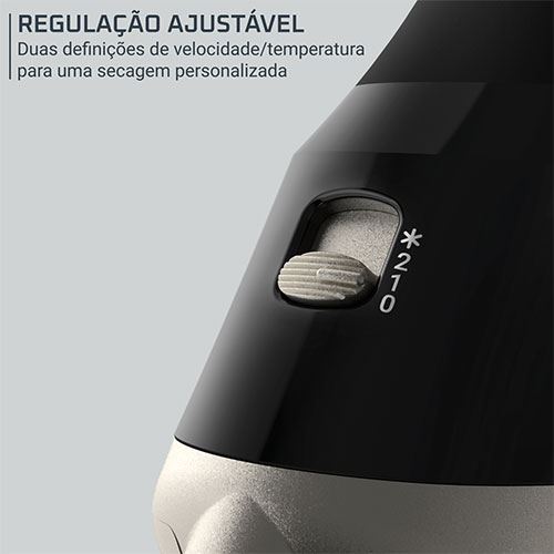 DEFINIÇÕES AJUSTÁVEIS: Duas definições de velocidade/temperatura que lhe permitem ter um fluxo de ar ajustado para uma secagem personalizada — com o fluxo de ar frio para fixar os resultados, para um penteado mais duradouro