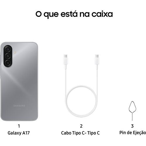 Resistência ao pó e à água IP54 | Botão dedicado Assistente IA Gemini |One UI 7: Personalize o seu Galaxy como nunca: Partilhe fotos e ficheiros de forma rápida e fácil com o Quick Share | Leve sempre consigo todos os seus cartões de pagamento, cartões de fidelidade e cartões de embarque na Samsung Wallet | Samsung Health (Toda a sua saúde no seu Galaxy A17 4G) | Samsung Members (Dicas para usar o seu dispositivo Galaxy e uma grande comunidade ao seu alcance) | Modos e rotinas (Ajustes automátic
