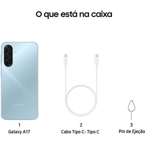 O Galaxy A17 5G combina design elegante com desempenho robusto para quem procura velocidade e qualidade. Equipado com ecrã Super AMOLED de 6,7" e taxa de atualização de 90Hz, oferece imagens nítidas e fluídas. A proteção Gorilla Glass Victus e a certificação IP54 garantem maior resistência a salpicos e poeiras.