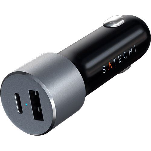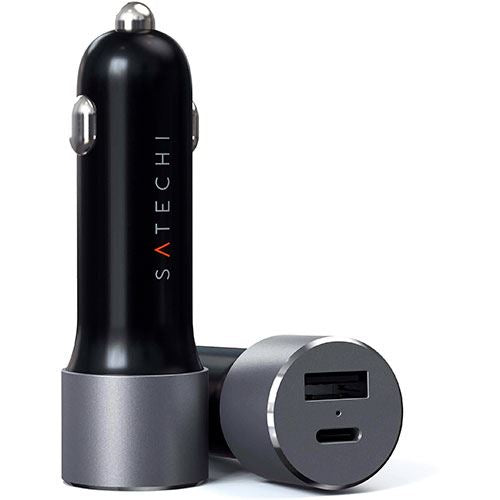 Adaptador de Carregador de Carro Satechi USB-C + USB-A | 72W | 12V / 24V - Cinzento espacial