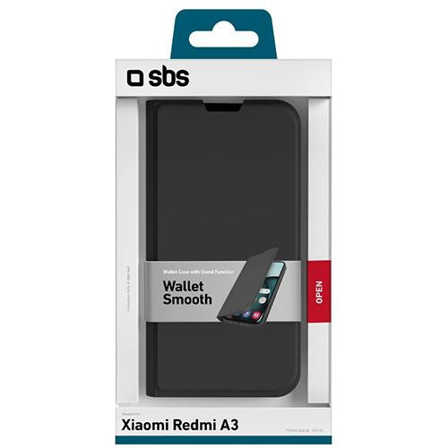 Capa SBS Wallet Smooth para Xiaomi Redmi A3 - Preta