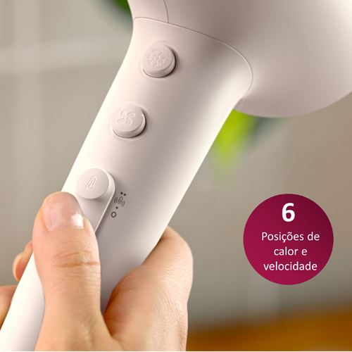 Escolha facilmente a combinação de calor e velocidade que funciona melhor para o seu cabelo e estilo. Seis regulações diferentes asseguram um controlo preciso para um penteado personalizado