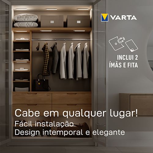 Montagem confortável com ímanes ou fita adesiva 3M | Compacto e leve | Recarregável | LED branco quente para uma iluminação agradável Sensor de movimento para ativar a luz | Detecção de movimento num raio de ação de 3 m e 120° | Desliga-se automaticamente após 20 segundos
