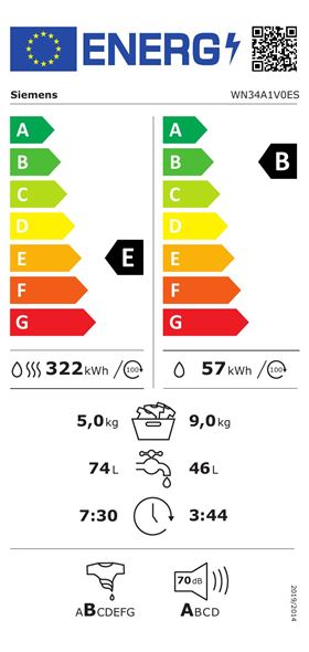Máquina de Lavar e Secar Roupa Siemens iQ300 WN34A1V0ES | 9/5 Kg | 1400 RPM | E | Branco