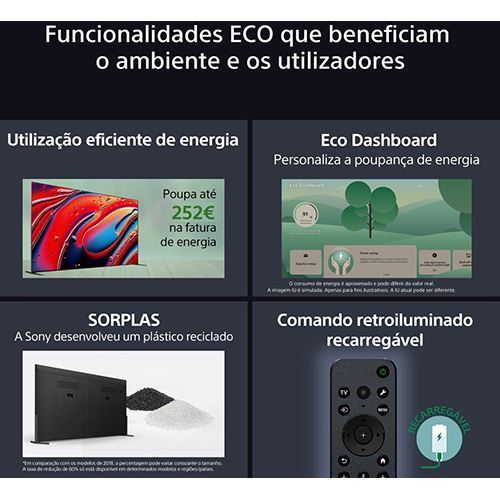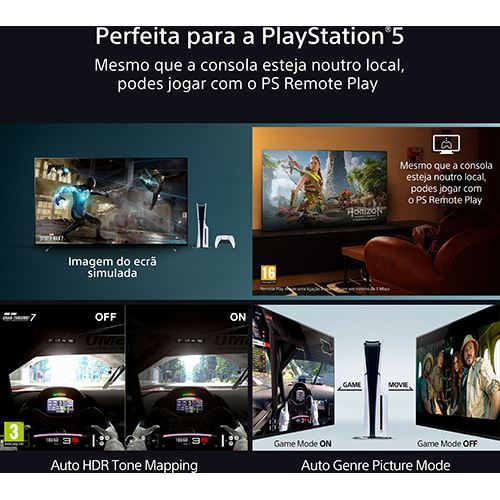 XR Super Resolução | XR Triluminos Pro | XR HDR Remaster | XR Smoothing | XR Motion Clarity | HDR 10 | HLG | Dolby Vision