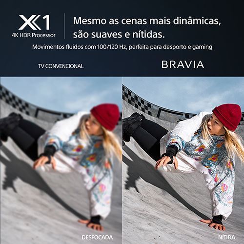 Não importa se está a assistir a um filme de ação ou um documentário sobre a natureza: com uma frequência de ecrã de 120 Hz, desloque-se suavemente entre cenas rápidas, sem perdas de fluidez. O processador 4K HDR Processor X1 e o processamento de cor 4K X-Reality Pro garantem um desempenho com resposta rápida e eficiente, transformando a visualização do dia-a-dia numa experiência de cinema imersiva.