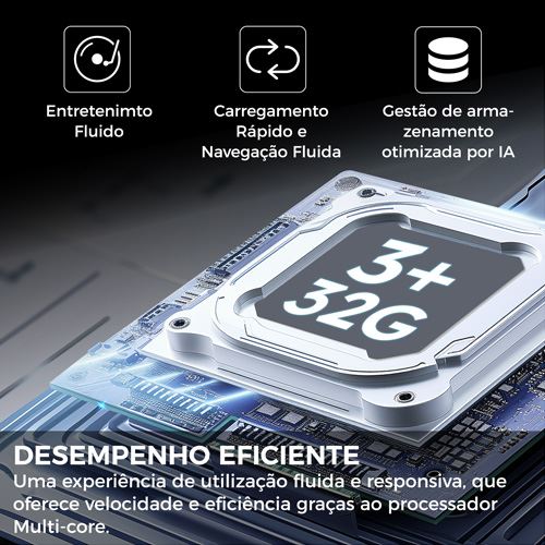 O processador multi-core e 2 GB de RAM garantem navegação perfeita e acesso rápido às Apps, enquanto o armazenamento de 32 GB possui amplo espaço para conteúdo.