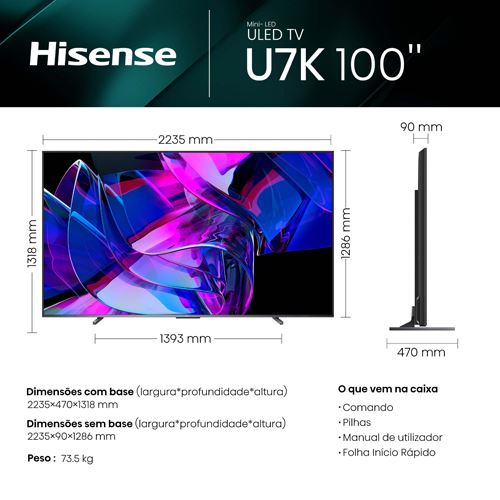 Smart TV Hisense 100" Mini LED UHD 4K 100U7KQ - 254cm