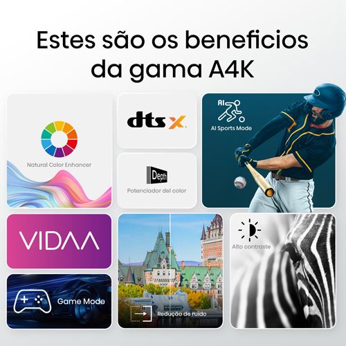 Modo de Jogo (2K 60Hz 20 ms) | Filtro 3D Digital Comb | Redução de ruído MPEG/Mosquito