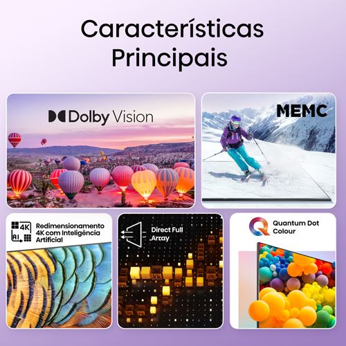 HDR10+ | HDR10 | HLG | Wide Color Gamut | Tecnologia Quantum Dot | Dolby Vision | Upscaling Ultra HD | MEMC | Filtro 3D Digital Comb | Redução de ruído MPEG | Redução de ruído Mosquito | Modo Jogo PLUS | VRR | ALLM