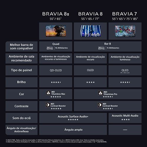 HDR10 | HLG | DolbyVision | XR Clear Image | XR OLED Motion | XR Contrast Booster 25 | Melhoramento de contraste dinâmico | Sensor de Luz e Cor