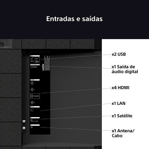 Melhoramento de Imagem HDR10 | HLG | DolbyVision | 4K X-Reality™ PRO | Motionflow™ XR 200/240 Hz interpolados (50 Hz nativos) | Melhoramento de contraste dinâmico | Sensor de Luz