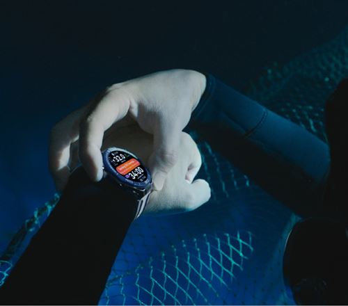 Com resistência à água até 150 metros (certificação 20 ATM, IP68 e IP69), este smartwatch é ideal para mergulho técnico, livre ou recreativo. Inclui ainda comunicação subaquática por sonar, permitindo trocar mensagens até 30 metros de profundidade — uma inovação que substitui sinais manuais ou lanternas.