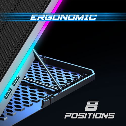 Outras Funcionalidades 8 posições (10° a 30°) | Fluxo de ar: 169CFM | Suporte para Smartphone | Iluminação RGB