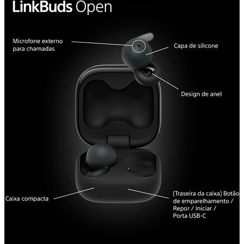 Auriculares True Wireless Bluetooth Sony LinkBuds Open WF-L910B - Preto