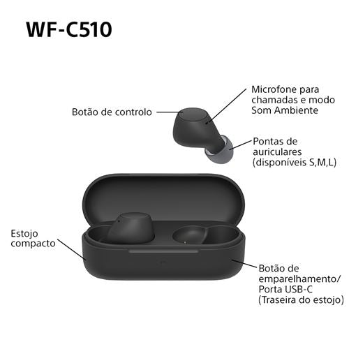 Auriculares True Wireless Bluetooth Sony WF-C510 - Preto