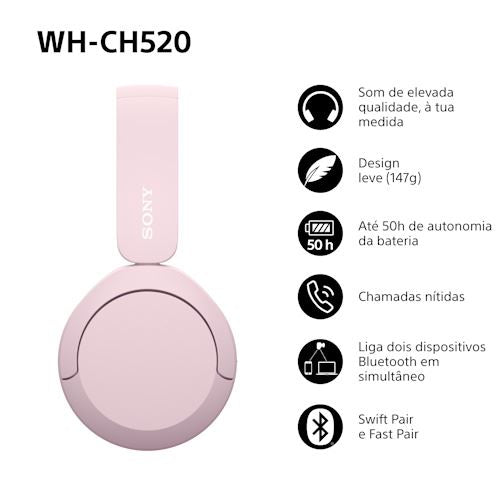 Auscultadores Bluetooth Sony WH-CH520P - Rosa