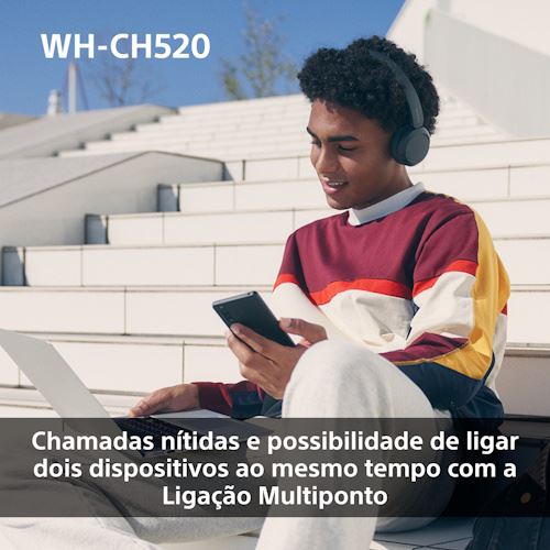 Experimenta os auscultadores sem fios Sony WH-CH520 - Som soberbo para todas as músicas, num estilo que combina contigo. Escolhe entre Preto, Branco, Azul, Bege, Amarelo ou Rosa.