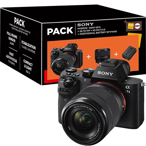 Máquina Fotográfica Mirrorless Sony Alpha a7 Mark II + SEL-2870 FE 28-70 mm f/3.5-5.6 OSS + FE 50mm f/1.8 + Bateria Extra NP-FW50