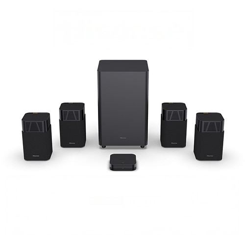 Com um design sofisticado na cor preta, o Hisense Flex HT Saturn adapta-se a qualquer ambiente. As dimensões ajustáveis dos seus componentes, desde o módulo de controlo a medir 118 mm x 27 x 118 mm até ao subwoofer de 240 x 390 x 240 mm, permitem uma disposição harmoniosa no mobiliário. As elegantes colunas satélite medindo 122 x 196,5 x 122 mm oferecem não só um som excecional mas também um elemento estético elegante para qualquer sala de estar. Graças ao seu peso de 14,35 kg, oferece a estabilidade necessária com facilidade de colocação.