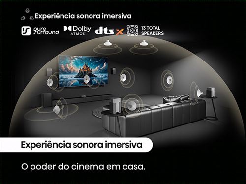 Outras Informações Subwoofer + Colunas Satélite sem fios | Dolby Atmos | Dolby Digital | Dolby Digital Plus | DTS X | DTS Virtual X