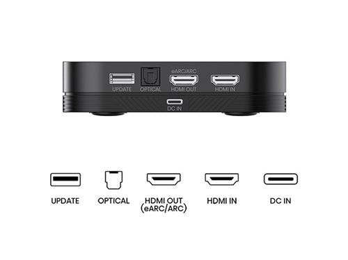 Conectividade Bluetooth 5.3 | 1x Entrada HDMI (2.1, ALLM) | 1x Saída HDMI (eARC) | 1x Ótica Digital | 1x USB (apenas para atualizações)