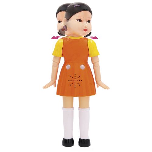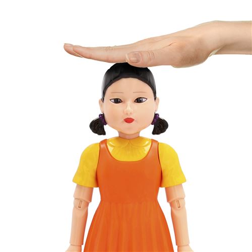 Young-Hee, a boneca de uma das séries mais conhecidas da Netflix: Squid Game. Exibe esta figura que captura a essência da boneca da série. Consegue uma experiência imersiva desta prova icónica Red light, Green Light. Inclui dois sensores de movimento, uma cabeça que gira, um altavoz com 8 sons da série e olhos que se iluminam. Queres recriar o jogo? Pressiona a sua cabeça para começar, mexe-te quando a Young-Hee cante a canção, fica quieto quando gira a cabeça ou serás eliminado. Pressiona a sua cabeça para desconectar e ser o ganhador.