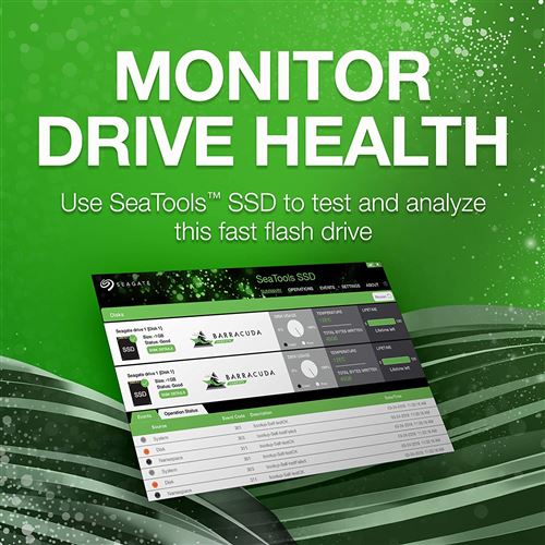 Baixa o software gratuito SeaTools™ SSD para aproveitar os relatórios de desempenho de unidade, atributos S.M.A.R.T., monitoramento de integridade, atualizações de firmware, diagnóstico e logs de gerenciamento.