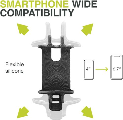 Dimensões: este suporte de silicone pode conter smartphones de até 6,7" e é perfeitamente compatível com guidões de 12 a 32 mm.