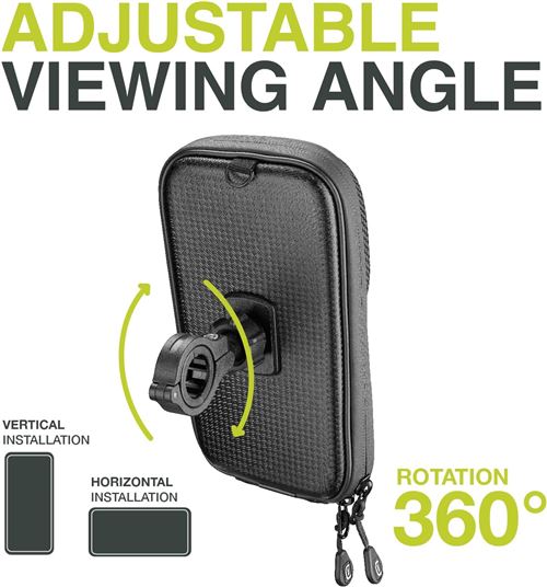 Suporte giratório - o suporte, uma vez fixado ao guiador, pode ser girado em 360°, tornando-o super confortável de usar e útil em qualquer situação.