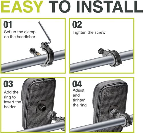 Fácil de montar / ?Giratório / Resistente à água / Compatível com guidões de 12 a 32 mm