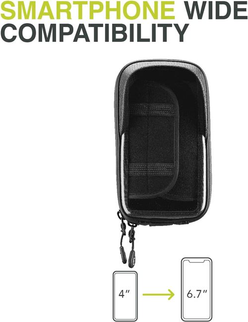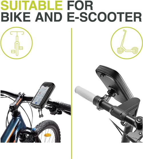 Impermeável e resistente - Waterproof Holder, graças ao seu revestimento de silicone, é totalmente resistente à água, mantendo o telefone protegido da chuva e dos salpicos. O revestimento de silicone também protege o smartphone contra possíveis impactos.