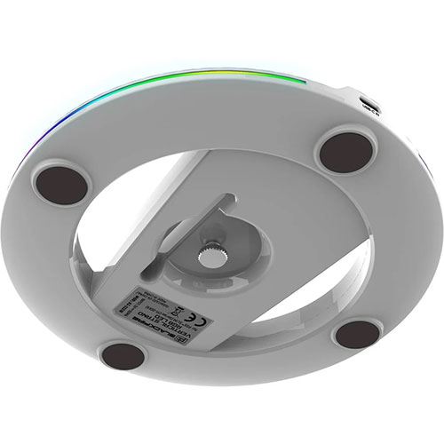O acabamento em branco foi pensado para combinar com a estética contemporânea de muitas consolas e móveis, permitindo que o suporte se funda com o restante equipamento sem destoar. A simplicidade das formas contribui para um aspeto minimalista, ao mesmo tempo que acrescenta um toque de tecnologia graças à iluminação RGB. Este equilíbrio entre forma e função facilita a integração em configurações de diferentes estilos, do mais sóbrio ao mais arrojado.