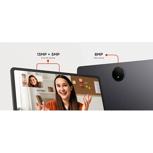 O sistema de câmara frontal dupla de 13 MP + 5 MP proporciona uma nitidez cristalina, enquanto o sistema estéreo quádruplo oferece sons fortes e precisos.