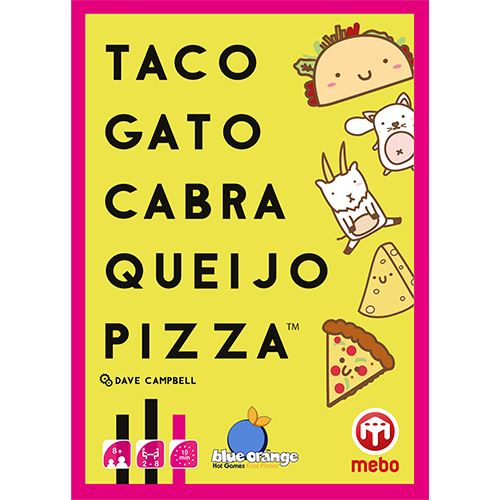 Taco Gato Cabra Queijo Pizza! Fixa estas 5 palavras disparatadas na tua cabeça. Assim que houver correspondência entre uma carta e a palavra que foi anunciada, apressa-te a pôr a tua mão em cima da pilha de cartas central. O último jogador a pôr a mão deve receber todas as cartas. Deves ser rápido para conseguires ser o primeiro a livrares-te de todas as tuas cartas. Tem cuidado! A tua mente vai pregar-te partidas. Este jogo super viciante é tão único quanto o seu nome. Diverte-te!