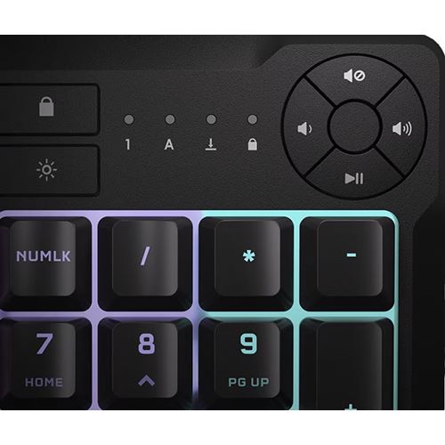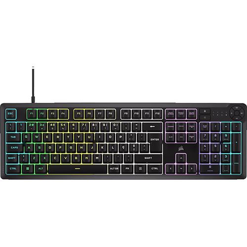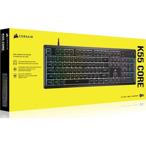 O teclado Gaming Corsair K55 Core coloca-o no caminho da vitória, com retroiluminação RGB de dez zonas totalmente personalizável e botões de controle media dedicados.