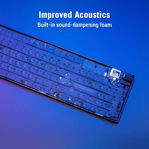 O interior está otimizado com espuma de amortecimento para reduzir ecos e melhorar o som das teclas, oferecendo uma experiência premium desde o primeiro toque. Além disso, com memória interna para perfis, N-key rollover, 1000 Hz de report rate e total personalização via Armoury Crate, tens controlo absoluto sobre cada pormenor.