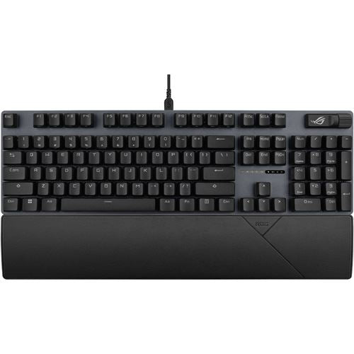 Inclui um descanso de pulso para maior conforto, cabo USB-A para USB-C de 2 metros, ferramenta 2-em-1 para troca de teclas e switches, e uma tecla de espaço temática ROG que reforça o espírito da marca.