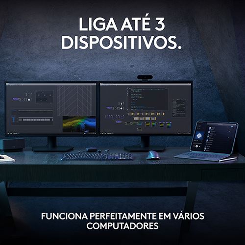 Emparelhe com até 3 dispositivos em quase todos os sistemas operativos (Windows, macOS, Linux) através do Bluetooth Low Energy ou do receptor USB Logi Bolt incluído.