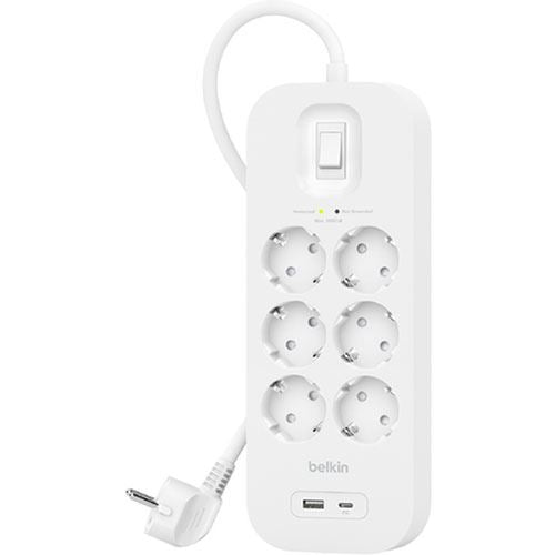 Tomada Belkin 6 Tomadas + USB-C + USB-A - Branco