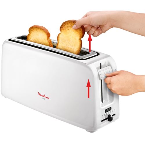 Outras Informações Torradeira com 1 fenda longa: Ideal para fatias longas de pão|Elevação extra: Para retirar mais facilmente as suas torradas|Função stop: Interrompe de imediato o ciclo de tostagem